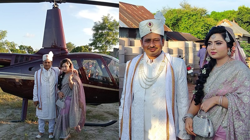 স্থানীয় বাসিন্দা বীপু মাদবর বলেন, বিয়েটি আমাদের গ্রামে হয়েছে। কামালের স্ত্রী অন্যের সঙ্গে দেড় মাস আগে চলে যায়। পড়ে আজ সে হেলিকপ্টারে করে এক মেয়েকে সঙ্গে নিয়ে নতুন স্ত্রী নিয়ে এসেছেন।