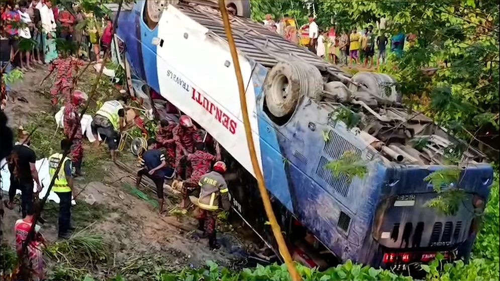 টাঙ্গুয়ার হাওর দেখতে ঢাকা থেকে সুনামগঞ্জ যাওয়ার পথে পর্যটকবাহী একটি বাস নিয়ন্ত্রণ হারিয়ে খাদে পড়ে যাওয়ার ঘটনায় একই পরিবারের দুইজন নিহত হয়েছেন। এতে আহত হয়েছেন আরও অন্তত ১০ জন। শুক্রবার (২৪ অক্টোবর) ভোরে সিলেট-সুনামগঞ্জ মহাসড়কের শান্তিগঞ্জ উপজেলার পাগলা বাজারের পাশে এ দুর্ঘটনা ঘটে।