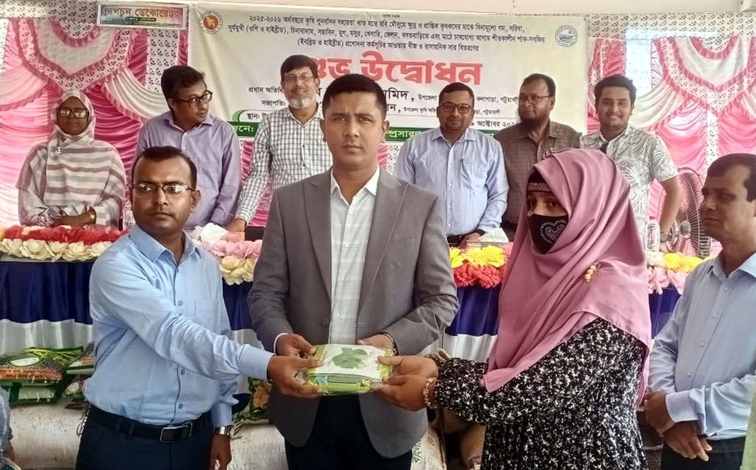 কলাপাড়া(পটুয়াখালী)প্রতিনিধি।। পটুয়াখালীর কলাপাড়ায় ৯ হাজার ৪৭০ জন কৃষককে বিনামূল্যে বীজ ও রাসায়নিক সার বিতরণ করা হয়েছে। বুধবার সকালে উপজেলা প্রশাসন ও কৃষি সম্প্রসারণ অধিদপ্তরের উদ্যোগে অনুষ্ঠনিকভাবে গম, সরিষা, সূর্যমুখী, চিনাবাদাম,সয়াবিন, মুগ, মুসুর,ফেলন বীজ সহ রাসায়নিক সার প্রদান করা হয়। ২০২৫-২০২৬ অর্থ বছরে কৃষি পূনর্বাসন খাত হতে রবি মৌসুমে ক্ষুদ্র ও প্রান্তিক কৃষকদের বসতবাড়িতে এবং মাঠে চাষযোগ্য আগাম শীতকালীন শাক-সবজির প্রণোদনা কর্মসূচির আওতায় এসব উপকরণ হয়েছে। অনুষ্ঠানের সভাপতিত্ব করেন উপজেলা ভারপ্রাপ্ত কৃষি কর্মকর্তা মো.নাহিদ হাসান।