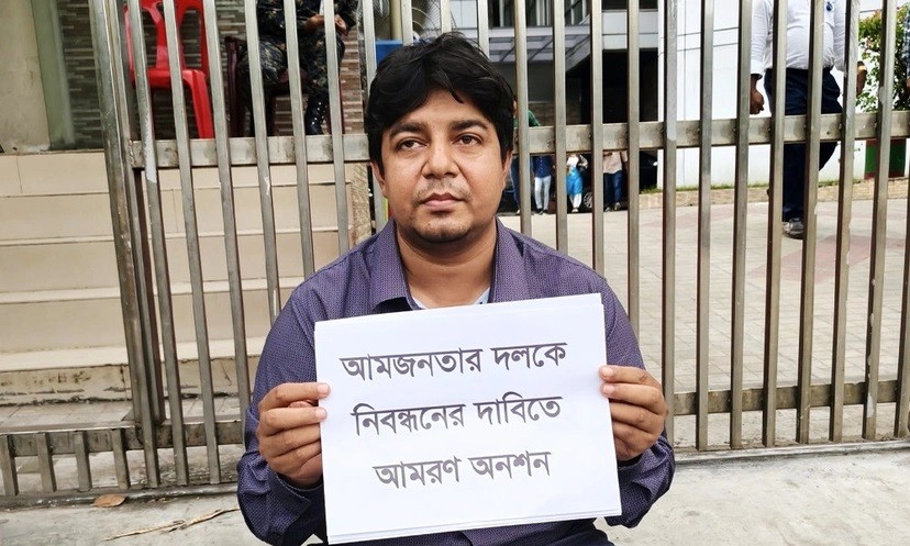 নতুন রাজনৈতিক দল হিসেবে আমজনতা দল নির্বাচন কমিশনের (ইসি) নিবন্ধন না পাওয়ায় দলটির সদস্যসচিব মো. তারেক রহমান কমিশনের সামনে আমরণ অনশনের ডাক দিয়েছেন। মঙ্গলবার (৪ নভেম্বর) বিকেল ৪টার দিকে আগারগাঁওয়ে নির্বাচন কমিশনের প্রধান ফটকের সামনে বসে আমরণ অনশনের ডাক দেন তিনি। নিজের ফেসবুকেই এ তথ্য জানিয়েছেন তারেক রহমান।