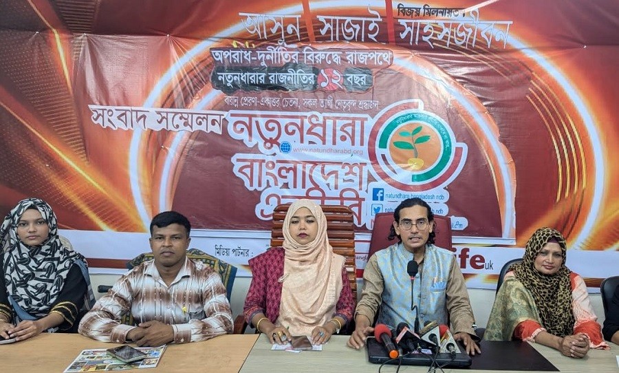 রাকিব-হুদা-আউয়ালের পথ ধরে মেরুদণ্ডহীন নাসির কমিশন নতুনধারাকে নিবন্ধন থেকে বঞ্চিত করার প্রতিবাদে ৭ নভেম্বর বিজয় মিলনায়তনে অনুষ্ঠিত সংবাদ সম্মেলনে উপরোক্ত কথা বলেন। এসময় তিনি আরো বলেন, নির্বাচন কমিশনে ১০৪ উপজেলা, ২৪ জেলা, কেন্দ্রীয় কমিটি, মুদ্রিত গঠনতন্ত্র, বাড়ি ভাড়ার চুক্তিপত্র, প্রতি শাখার ২০০ করে ভোটারের স্বাক্ষরসহ সকল শর্ত মেনে মোট ৭৩৪৩ পৃষ্ঠার আবেদন জমা দেয়ার পরও নিবন্ধন না দেয়ার একমাত্র কারণ, নতুনধারা বাংলাদেশ এনডিবিকে অতিতের সরকারের মত এই সরকারও সহ্য করতে পারে না।