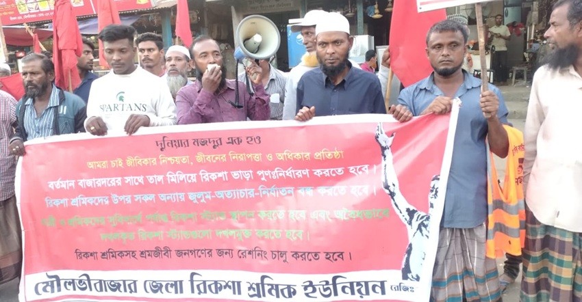 সেখানে সংক্ষিপ্ত পথসভায় সভাপতিত্ব করেন- জেলা রিকশা শ্রমিক ইউনয়িনের সভাপতি মোঃ সোহেল মিয়া। বক্তব্য রাখেন- ইউনিয়নের সাধারণ সম্পাদক দুলাল মিয়া, সহ-সভাপতি গিয়াসউদ্দিন, সহ-সাধারণ সম্পাদক জসিম উদ্দিন, সেবক মিয়া, মিজানুর রহমান, হোটেল শ্রমিকনেতা জামাল মিয়া প্রমূখ।