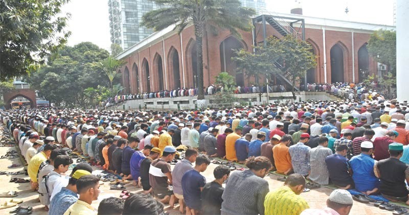 এদিন প্রখর রোদ উপেক্ষা করেই মসজিদে সমবেত হন অনেকে। রাজধানী অন্যতম বৃহৎ জামাতটি অনুষ্ঠিত হয় বায়তুল মোকাররম মসজিদে। বেলা সোয়া ১২টার পর থেকেই মুসল্লিদের ঢল নামে মসজিদে। এসময় দূর-দূরান্ত থেকে নামাজ পড়তে আসেন মুসল্লিরা। মসজিদের ভেতরে জায়গা সংকুলান না হওয়ায় সিঁড়ি ও রাস্তায় দাঁড়িয়েও নামাজ আদায় করেন অনেকে।উল্লেখ্য, জুমার নামাজ শেষে দেশ ও মানুষের মঙ্গল কামনায় দোয়া মোনাজাত অনুষ্ঠিত হয়।
