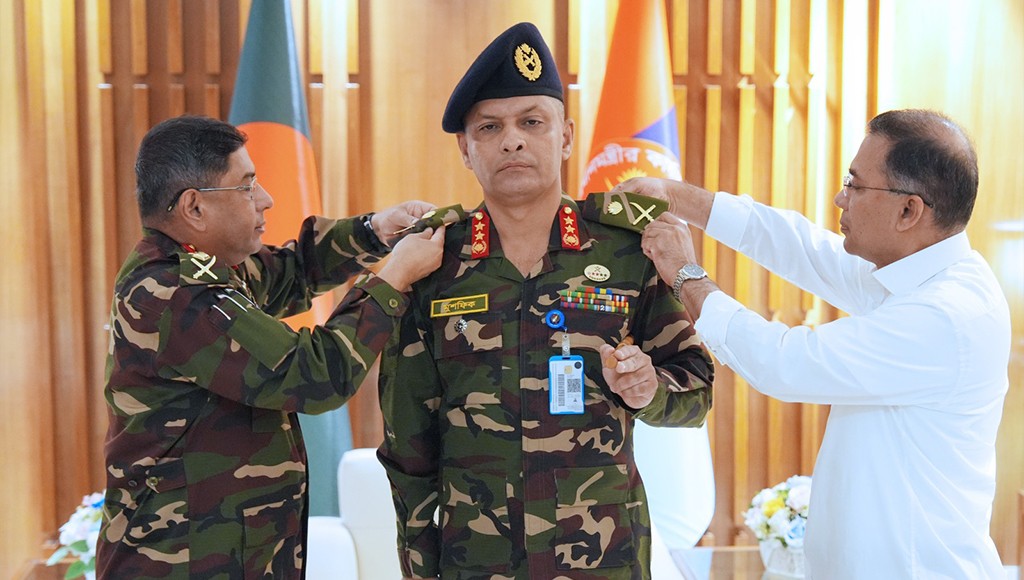 পদোন্নতিপ্রাপ্ত দুই সেনা কর্মকর্তাকে র্যাঙ্ক ব্যাজ পরিয়েছেন প্রধানমন্ত্রী তারেক রহমান। পদোন্নতি প্রাপ্ত দুই সেনা কর্মকর্তা হলেন; লেফটেন্যান্ট জেনারেল মীর মুশফিকুর রহমান এবং মেজর জেনারেল কায়সার রশিদ চৌধুরী।সোমবার (২৩ ফেব্রুয়ারি) প্রথমবারের মত ঢাকা সেনানিবাসে সশস্ত্র বাহিনী বিভাগে প্রধানমন্ত্রী কার্যালয়ে অফিস করেন প্রধানমন্ত্রী।