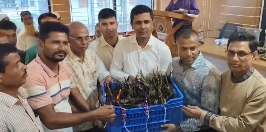 কলাপাড়ায় কৃষকের মাঝে প্রথমবারের মতো গোলপাতা গাছের চারা বিতরন